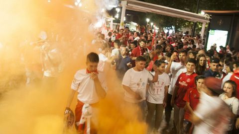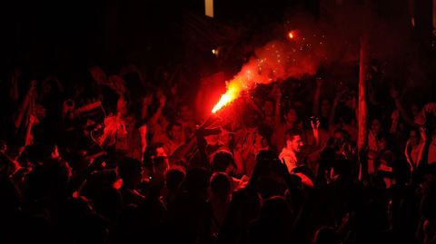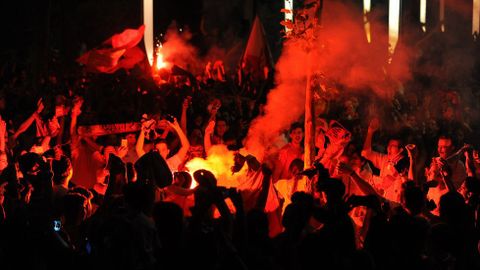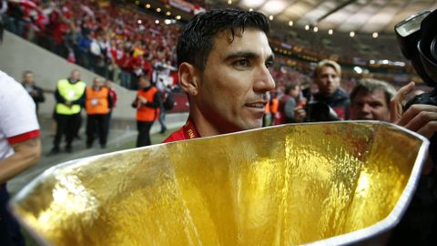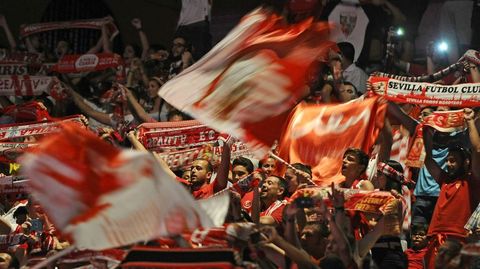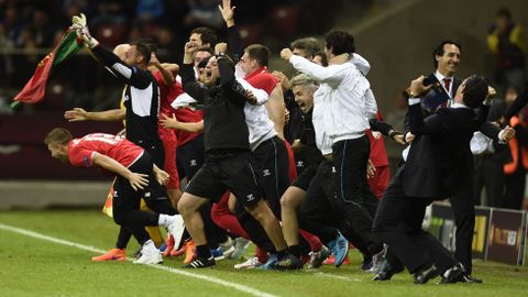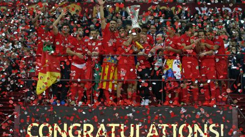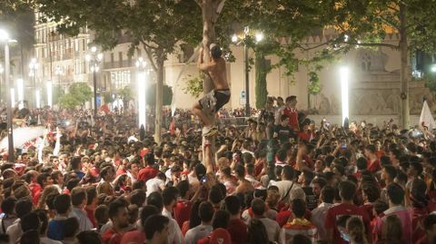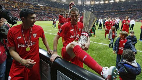 Celebración sevillista tras la conquista de la Liga Europa