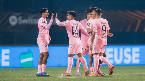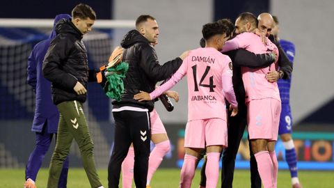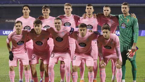 Los futbolistas del Celta, tras el triunfo por 0-3 cosechado en el Maksimir frente al Dinamo de Zagreb.