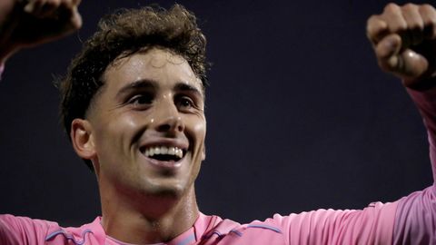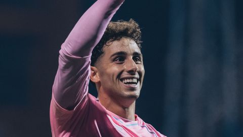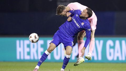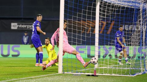 Pablo Durán, celebrando uno de sus dos tantos frente al Dinamo de Zagreb.