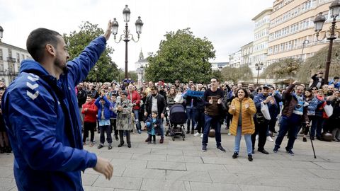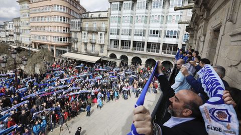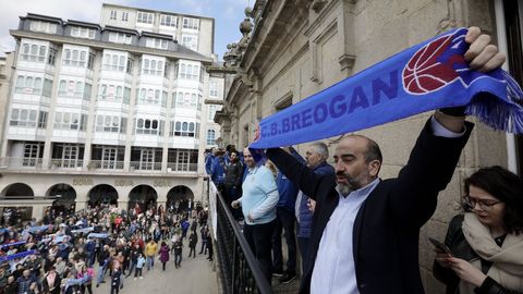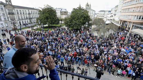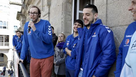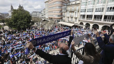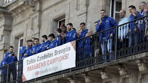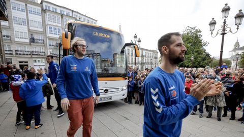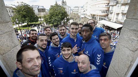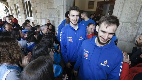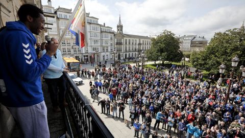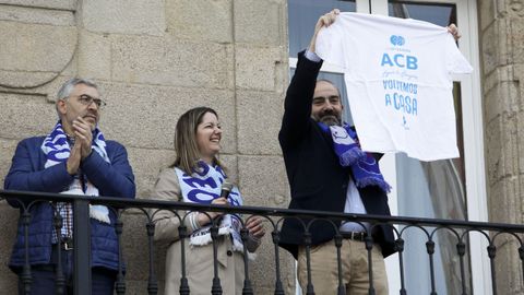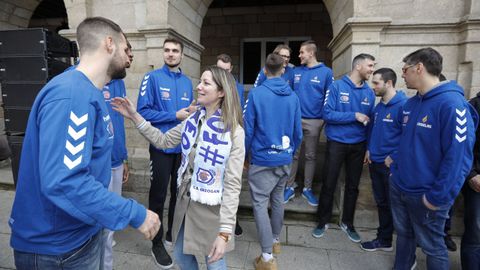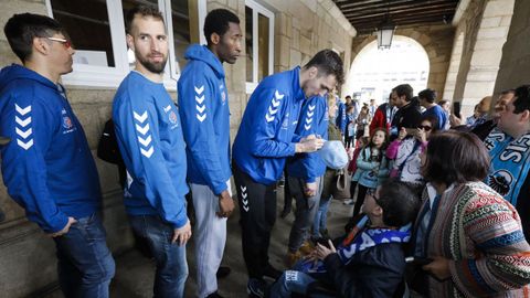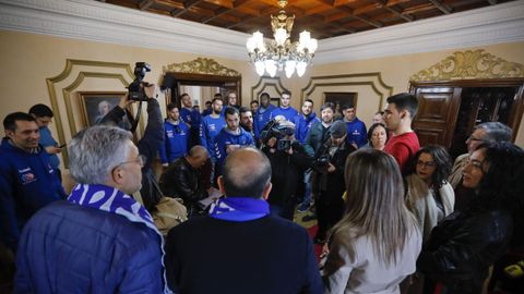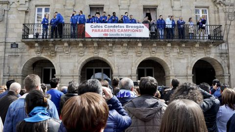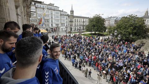 El equipo al completo fué recibido por la corporación municipal antes de salir a saludar a los breoganistas concentrados en la Praza Maior