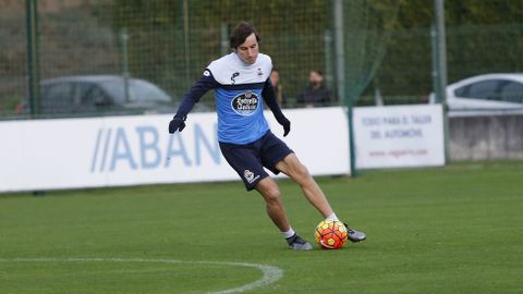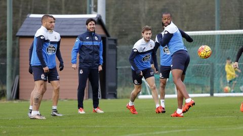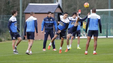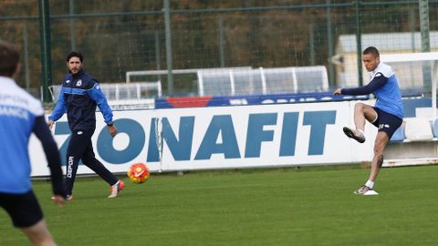 El Deportivo se ejercitó en Abegondo en una sesión en la que el delantero coruñés dio el susto