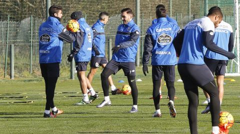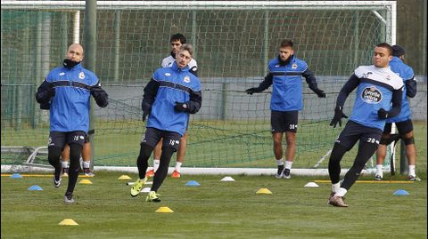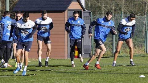 El Deportivo realizó su última sesión de trabajo en Abegondo antes del encuentro ante la Real Sociedad