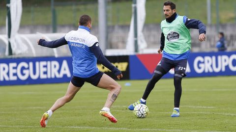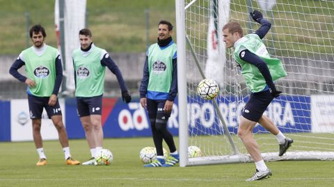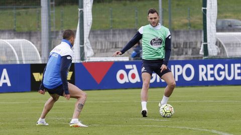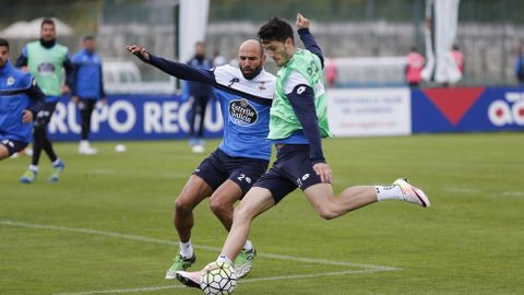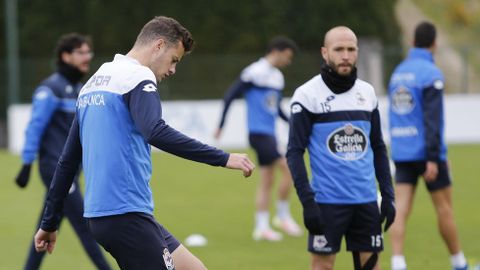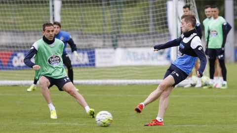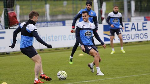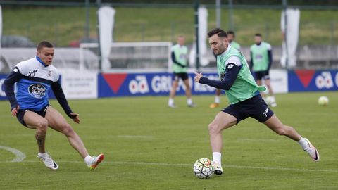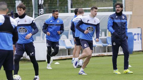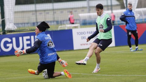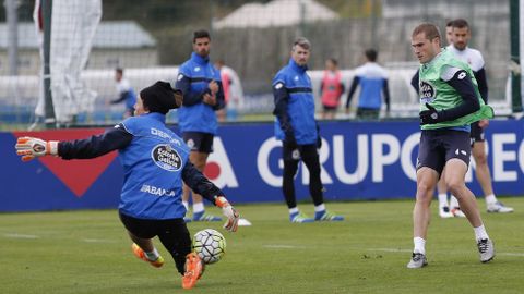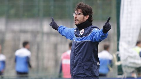 Víctor Sánchez preparó una sesión intensa con rondos, un ejercicio de duelos y un partido para continuar preparando el encuentro del próximo domingo ante el Getafe