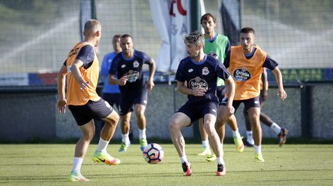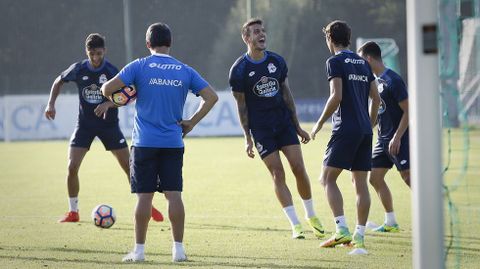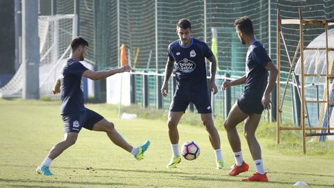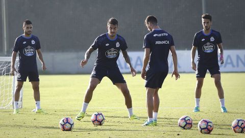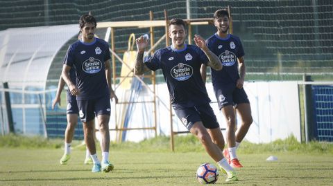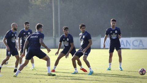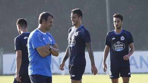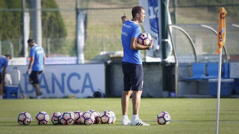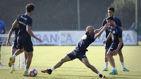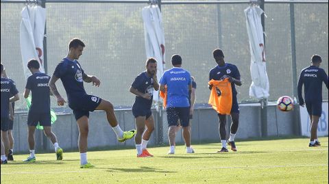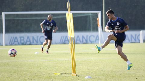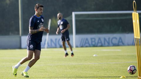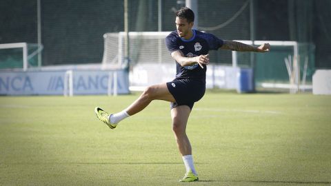 Primera sesión del nuevo delantero en la vuelta al trabajo del equipo coruñés