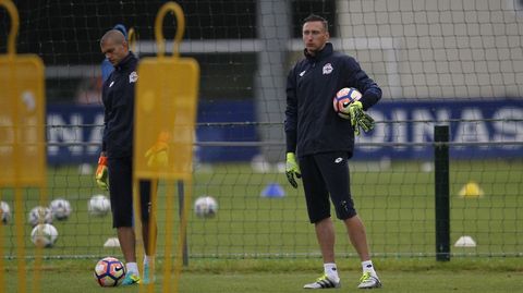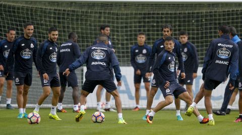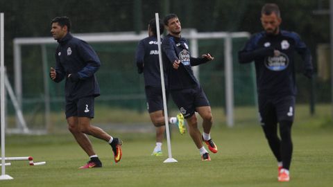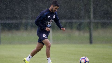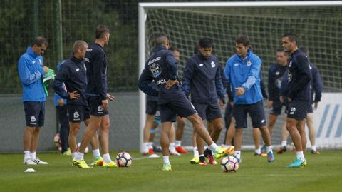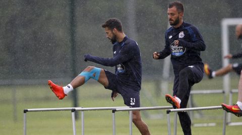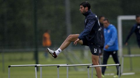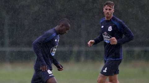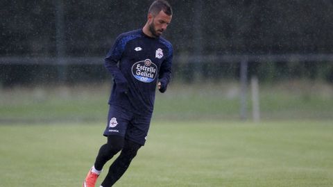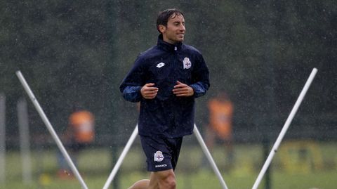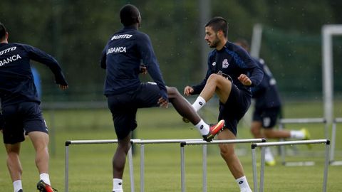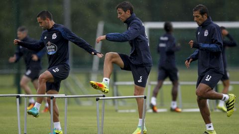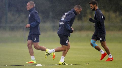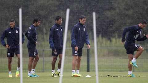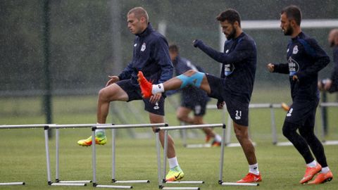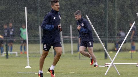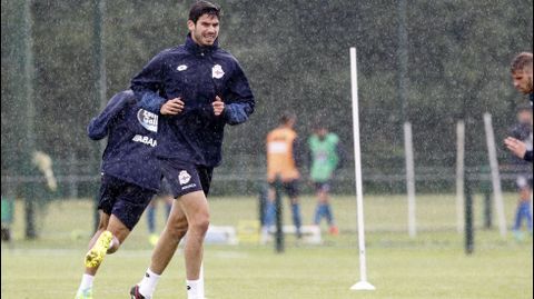 Las intensas lluvias marcaron la sesión de trabajo del Deportivo, en su preparación para la visita a Vitoria