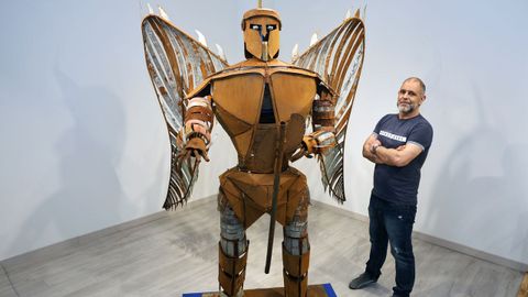 Con mano de ferreiro, el creador arousano David Longo Señoráns reutiliza materiales y objetos sin uso para darles nueva vida. Expone hasta el 8 de abril en el Centro Comercial Arousa de Vilagarcía