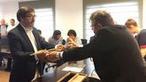 El regidor, que simbolizó su llegada puño en alto, fue elegido con el apoyo del PSOE