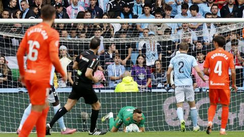El autor del gol del Celta ante la Real Sociedad lamenta que se les escapara de nuevo el primer triunfo del curso