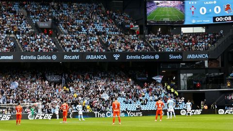 El excéltico también fue aclamado a su llegada a Balaídos y cuando se presentaron las alineaciones del Celta-Real Sociedad