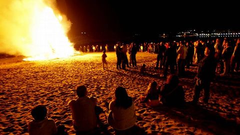 Numerosas personas se dieron cita la noche del domingo en la playa de Covas, en Viveiro, en torno a la gran hoguera que, como es tradición, se quema en el arenal a partir de la medianoche. Los preparativos comenzaron días antes, con la recogida de madera, rastrojos y enseres. Familias y pandillas de amigos siguieron junto al mar, durante varias horas, el espectáculo de fuego, luz y colorido. Presenciar sobre la arena la escenificación de las llamas se convierte en un reclamo y atractivo para muchos vecinos y visitantes, que se sumaron después a la fiesta.