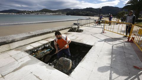 El cambio de la dinámica de las mareas, recuerdan los vecinos, ha provocado que el oleaje se concentre en la zona de poniente de la playa, «socavando a area, e acumulándoa no outro extremo da praia».