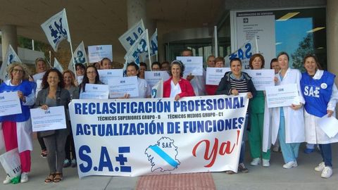 Este miércoles por la mañana tuvo lugar una nueva concentración de técnicos sanitarios ante las puertas del Hospital Público da Mariña. Los técnicos, como se puede ver en la pancarta de la imagen, demandan una reclasificación profesional. «Reiteramos nuestra exigencia: que se respete nuestra dignidad laboral, salarial, profesional y que se respete y aplique la ley», señalaban ayer en un comunicado.
