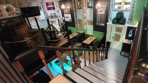 La cervecería, en dos plantas, ofrece la posibilidad de participar de diferentes ambientes. Ocupa 218 metros cuadrados, pero de cara al verano se ampliará con otro espacio anexo con el que llegará a superar los 300, convirtiéndose en un establecimiento exclusivo en Ribadeo, que viene a completar su oferta hostelera. Además de por su oferta de cerveza y de bebidas (destaca la carta de Guinness y combinados), también lo hará con sus propuestas de tapas variadas (todas a 3 euros) pinchos y comidas, con servicio de cocina abierto durante todo el día. Ofrecerá un plato caliente diario (lentejas, caldo gallego, sopas...) por 6 euros, sin faltar los arroces, los pescados del día y propuestas singulares de carnes (tartar de búfalo, torreznos de Soria, Black Angus..).