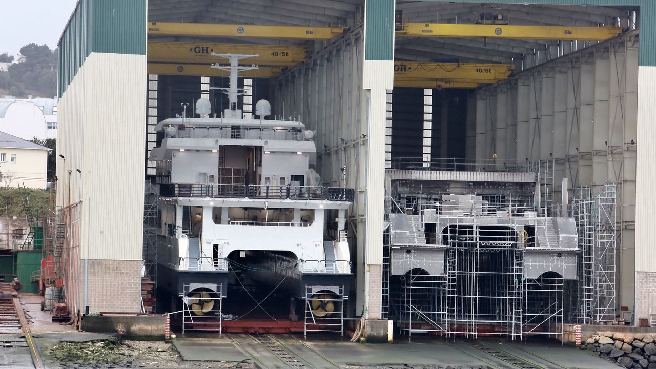 Estrictos contratos de confidencialidad preservan casi toda la información sobre otro espectacular catamarán de lujo que tocará mar por primera vez este jueves en A Mariña. De unos 67 metros de eslora y 14 de