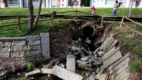 Cuando ese momento del año parece a punto de llegar, el parque de A Coca no ofrece su mejor aspecto. En algunas zonas el césped ha sido cortado, pero en otras crece desordenadamente y alcanza ya varios centímetros de longitud. Pero no es eso lo peor. Los temporales derribaron hace ya meses varios de los muros de contención del río de O Con a su paso por el parque de A Coca. Las losas que lo formaban cayeron sobre el cauce del río y todavía permanecen allí, interrumpiendo el paso del agua y afeando un entorno por el que pasan muchos peatones.