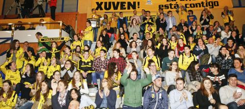 Ha habido llenos en el Pabellón de O Pombal. Pero pocas ocasiones como la de ayer en las que sus dos gradas, la fija y la supletoria de las grandes ocasiones, sonasen tan alto, sin parar un solo momento, y con una exquisita deportividad entre dos aficiones que probaron ser de diez -Marín desplazó a alrededor de un centenar de hinchas-. Un ambientazo deportivo, que tuvo su colofón cuando varios de los seguidores del Peixe aprovecharon el paso de un par de jugadores del Xuven para felicitarlos por su partido. foto ó.v.