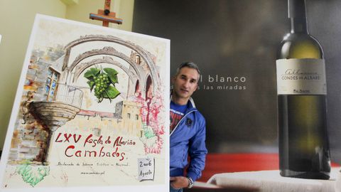 Famoso por sus pinturas con tinto de Barrantes, ahora está empeñado en hacer arte con vino albariño