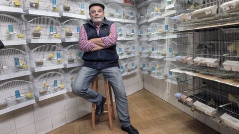 Es aficionado a los pájaros desde muy pequeño. «En los pueblos pequeños, como este, siempre cazábamos pajarillos en ‘gaiolas’. En casa siempre tuvimos pájaros, y ahí fue cuanco empecé a aficionarme. Luego, a base de ir a concursos, la cosa fue creciendo». Hasta ahora, que tiene quinientos pájaros en su casa.