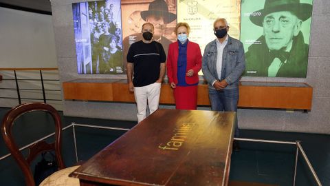 Los fondos de carácter doméstico fueron cedidos, en su mayor parte, por la familia Cabanillas, pero también hubo cesiones de instituciones que quisieron contribuir a alimentar este museo. Es el caso de la máscara fúnebre de don Ramón, realizada por su amigo y paisano Francisco Asorey, y de las hojas de laurel que lo coronaron como poeta durante una fiesta literaria de la Pascua de Padrón de 1958, ambas piezas cedidas por el Museo de Pontevedra. No menos meritoria es una pintura de Joaquín Sánchez Peña -coetáneo de Cabanillas- ilustrada con sus versos y que plasma Cambados visto desde Sálvora. La tabla, de 319 x 44 centímetros, fue cedida por la familia Pillado Silvoso, una saga muy vinculada al poeta, y ahora todavía más, a raíz de la concesión del Premio Ramón Cabanillas a Xoán Antonio Pillado. La distinción se entregará hoy a las 20 horas en el mismo escenario en el que ayer sonó la gaita de Bou de Bou e intervinieron Pitusa Cabanillas, el académico Francisco Fernández Rei, el concejal de Cultura, Tino Cordal, y la diputada provincial, Noemí Outeda.