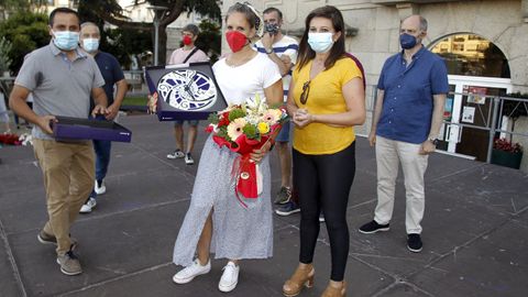 Las demostraciones de admiración y cercanía se sucedieron desde el momento en el que Portela se personó en la Praza do Corgo minutos antes del inicio del acto acompañada de su marido, el grovense y ex canoísta olímpico David Mascato, y su hija Naira, convertida a su vez en otra de las mecas más reconocidas en el mundo para orgullo de sus vecinos.