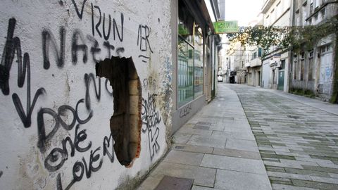 Lo cierto es que, con límite en A Mariña y Rey Daviña, hay varias calles que presentan un estado de abandono y desgaste, tal y como han denunciado algunos comerciantes en ellas afincados. La mala imagen de esas zonas «se incrementa esta Navidad ante la falta de iluminación en esa zona. Algo que ha llevado a los propios comerciantes a hacer un llamamiento público en este sentido, y al que el PP se suma», dicen desde Ravella. Los populares se preguntan si «es necesario llegar al punto de que los comerciantes y vecinos tengan que llegar a pedirle al Concello que ilumine la calle». Los populares ponen el foco en las calles Romero Ortiz y en la plaza Doctor Carús, que en opinión de los populares sufre una «degradación notable». Por ello el PP reclamará que se introduzca la reforma de esas zonas en los próximos presupuestos municipales.