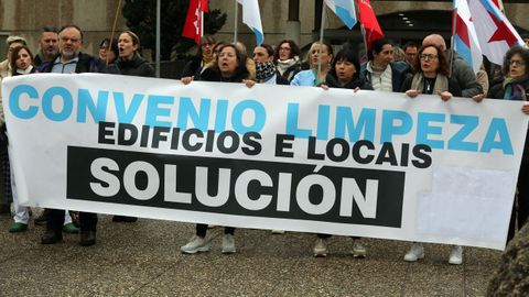 11 ene 2024 . Actualizado a las 05:05 h.Fueron cientos, según las centrales sindicales convocantes, CIG, Comisiones Obreras y UGT, los trabajadores, fundamentalmente trabajadoras del sector de la limpieza de edificios y locales de la provincia de Pontevedra los que ayer se sumaron al paro de 24 horas que también se convocó en Ourense. En Vilagarcía de Arousa, con una concentración delante del Hospital do Salnés que se trasladó a las puertas de la casa consistorial de Vilagarcía antes de recorrer el tramo que separa esta de la Casa del Mar. Su reivindicación, un «novo convenio digno» y no una subida salarial por debajo del IPC. foto martina miser