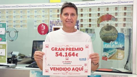 23 sep 2025 . Actualizado a las 05:00 h.La administración de loterías de San Roque, en Vilagarcía, fue el lugar en el que una persona afortunada selló una quiniela que resultó con catorce aciertos. Fueron un total de diez boletos en toda España con los mismos pronósticos, que se llevaron 54.164 euros cada uno. Faltó la guinda, que hubiera sido adivinar ese Valencia 2-Athletic 0. foto m. irago