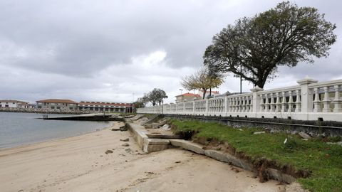 Los socialistas recuerdan la actuación realizada en 2014, durante el mandato de Tomás Fole, cuando la antigua barandilla de acero fue sustituida por una balaustrada que reproducía la estética de la existente en la playa de A Compostela. Según señalan, esta nueva estructura resultó ser más alta, menos resistente que la anterior y con menor visibilidad hacia el arenal y el mar.