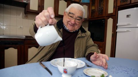 De allí es nuestro protagonista, y ejerce. Hace acompañar su «sinfonía culinaria» con una taza de tinto que, como dijo cuando tomó posesión como valedor del Tinto de Barrantes el pasado año, debería estar en las farmacias. No es la única distinción que tiene en su haber. Hace tres años le entregaron el Mexillón de Ouro de las fiestas de Vilanova, y es que en su pueblo de adopción también se le quiere.
