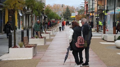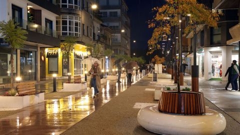 La céntrica calle de Vilagarcía, que ayer estrenó su reforma integral, aguantó otros 45 litros por metro cuadrado de precipitaciones antes de su apertura