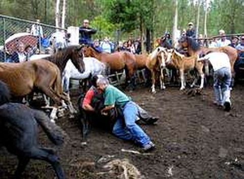 16 ago 2004 . Actualizado a las 07:00 h.?ese al mal tiempo registrado el domingo, los barbanzanos no quisieron perderse la única rapa celebrada este año en la comarca. Numerosas personas desafiaron a la lluvia y subieron al monte Iroite para ver cómo una veintena de jinetes lograban conducir unas cien reses al Curro de Campedulla, para proceder después a su marcaje. La fiesta ya comenzó el sábado con una monta salvaje, que no estuvo exenta de incidencias. Según informó el secretario del colectivo organizador, Ricardo Moledo, dos personas sufrieron heridas de carácter leve en sendas caídas. Pese a ello, el programa de actividades discurrió tal y como estaba previsto, y muchas personas optaron por acampar en la zona y reservar así un lugar privilegiado para el domingo. Ésa fue sin duda la jornada principal del curro, y comenzó con el traslado de las reses salvajes desde distintos rincones de la sierra de Barbanza hasta el recinto habilitado en Campedulla. Concluida esta misión, y con el fin de reponer fuerzas para afrontar la tarde, participantes y público disfrutaron de una comida campestre. Ricardo Moledo señaló que se agotaron las cien raciones de carne ao caldeiro puestas a disposición de los asistentes. El espectáculo llegó después de la comida, cuando los miembros de la Asociación Cabalar Curro de Campedulla se adentraron en el recinto para proceder a la rapa y marcaje de las cien reses capturadas. Durante este proceso se produjo otra incidencia, puesto que uno de los animales salvajes propinó un pisotón a un miembro de la organización, causándole la fractura de un dedo. Además de los miembros de la entidad promotora del curro, varias personas se llenaron de valor y se atrevieron a saltar al interior del recinto para probar suerte, consiguiendo dominar a las reses sin contratiempos. Pese a que las condiciones meterológicas fueron empeorando a medida que avanzó la jornada, muchas personas se cobijaron en las carpas instaladas en la zona o bajo sus paraguas, y se negaron así a perderse las carreras previstas para la tarde. Eso sí, Ricardo Moledo reconoció que el mal tiempo deslució la competición: «Aínda que moito público aguantou na zona, os mellores participantes marcharon, quedando só xinetes de Lousame e da comarca, polo que a competición non foi tan emocionante como en anos anteriores». La jornada concluyó con una carrera de burros y con el consiguiente reparto de los trofeos y premios a los ganadores. Aunque el mal tiempo aguó la fiesta, la entidad Curro de Campedulla consiguió un año más que los amantes del mundo caballar tuvieran la posibilidad de disfrutar de un encierro y una rapa en condiciones.