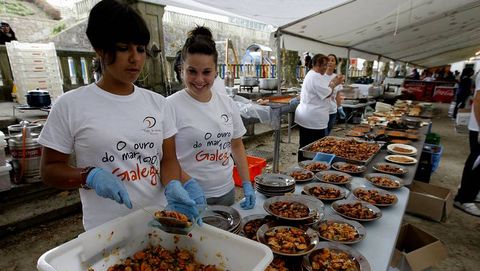 Se prepararán un total de novecientos kilos de mejillón: cuatrocientos de vianda y quinientos de bivalvo fresco que se distribuirán durante los dos días de la fiesta. También se harán cien empanadas y se cocinarán dos paellas gigantes. Todas las raciones tendrán un coste de tres euros «en estos tiempos que corren, no queremos subir los precios», declara Ramón Vicente, vicepresidente de la organización.