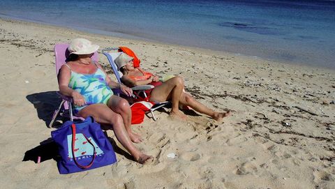 El buen tiempo anima a los vecinos a celebrar la jornada festiva del Primero de Mayo en los arenales de la comarca. Ciudadanos de Santiago se desplazaron a Barbanza con el propósito de darse un chapuzón y aprovechar los rayos de sol, después de varias jornadas en las que la lluvia prácticamente no dio tregua y obligó cobijarse bajo los paraguas. Ahora estos han sido sustituidos por las sombrillas.
