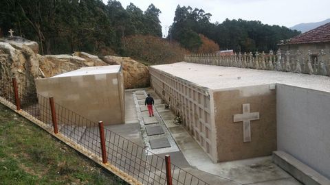 Gracias a la financiación de un empresario local y el visto bueno de Arzobispado y Concello, se compraron solares y se construyeron 70 columnas de enterramiento, cada una con tres nichos y un cenicero, a la vez que se dejaban espacios para futuros panteones. Precisamente, el viernes se les entregó el documento del título de propiedad en usufructo perpetuo a quienes habían adquirido una tumba en este camposanto.