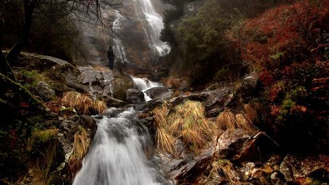Á tardiña penetras por vez primeira nun camiño que vai dende Acuncheira ata Cures. É bastante empinado, sobre todo no tramo final. Dende un alto da senda, observas no fondo, onde conflúen dúas ladeiras, o río que descende dende a fervenza de Cadarnoxo. Por un estreito leito de cantos, o sonoro caudal discorre entre carballos, castiñeiros, acacias, salgueiros, ameneiros, loureiros, piñeiros, freixos e algúns eucaliptos. E mesmo cerca dunha pontella, atopas un conxunto de hortensias en flor. Sentas na herba na beira do carreiro. Escoitas o son da auga, a súa canción, sempre a mesma música, pero con distinta letra.