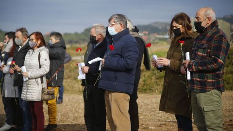 Así, fue nombrándose a 15 ciudadanos que también se vieron desamparados en su aspiración de no prolongar una vida que no les resultaba estimulante. Por cada uno, los presentes fueron recogiendo un clavel. Las flores estaban dispuestas en el centro del espacio de As Furnas en el que se desarrolló el acto y, al final, fueron lanzadas al mar como símbolo de la batalla conseguida.