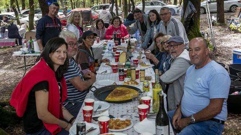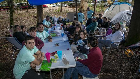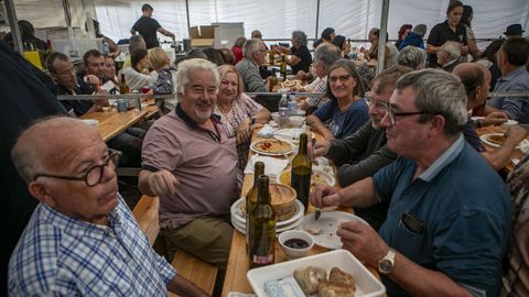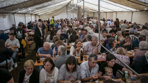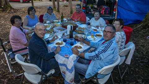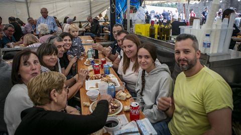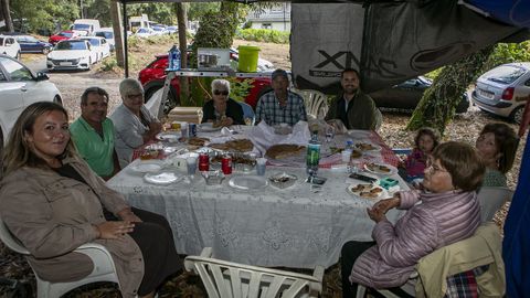 Bajo otro toldo, a la espera de una paella, estaba la familia de Sofía, con 34 miembros y cuatro generaciones. «Non faltamos nunca», asegura su nieta Inés.
