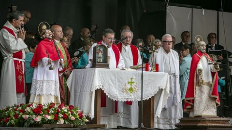 Este año se encargó de presidirla el párroco de Ribeira, Alfonso Mera, al que acompañaron otros sacerdotes como Juan José Bermúdez, de Boiro, Marcelino Barros, de Cabo de Cruz, o Juan Carlos Martínez, el cura anfitrión.