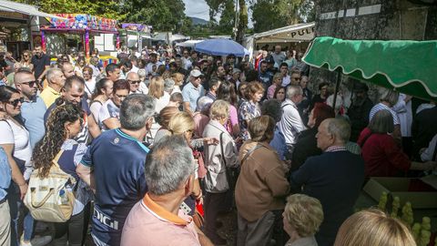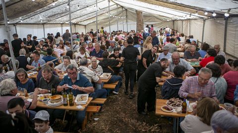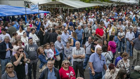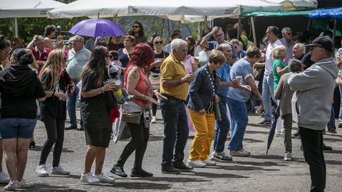 Aunque cayeron unas gotas, en las horas centrales del día la lluvia no llegó a arreciar y respetó a la romería más multitudinaria de Barbanza. De hecho en determinados momentos incluso llegó a salir el sol. Este año no se celebraron tantas comidas de familias y amigos en el monte debido al mal tiempo, pero las carpas, barras y todo el recinto de la fiesta se llenó de romeros deseosos de que llegase este día, que acostumbra a ser festivo local en Boiro cuando cae en laborable.