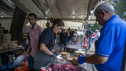 La música en sesión vermú tomó el relevo sobre el escenario. No faltó una familia de Dodro, incondicional de esta fiesta declarada de interés turístico gallego: «Deixamos os callos quentes e volvemos despois da orquestra».