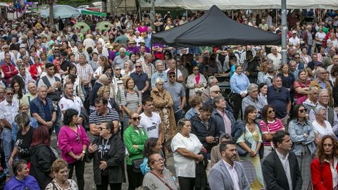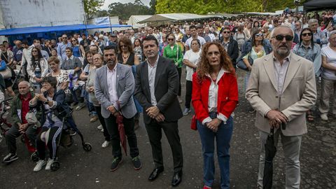 Al llegar al palco, comenzó la misa cantada. En primera fila estaban el alcalde de Boiro, José Ramón Romero; su número dos, Luis Ruiz; y la concejala de Cultura, María Outeiral. También numerosos fieles, entre ellos varios en silla de ruedas a los que su movilidad reducida no les impidió honrar a San Ramón como se merece.