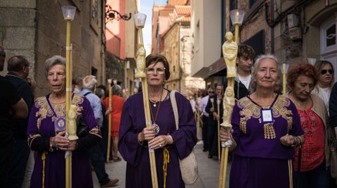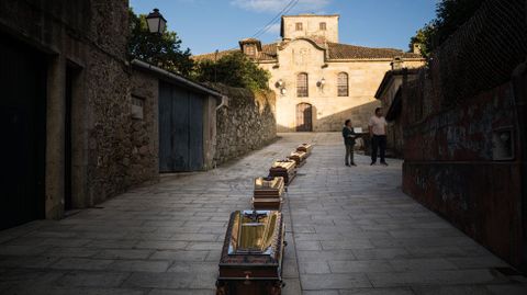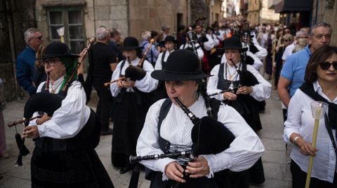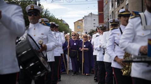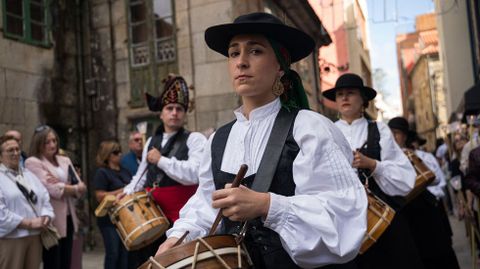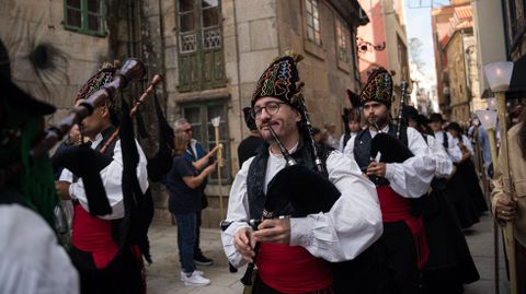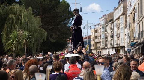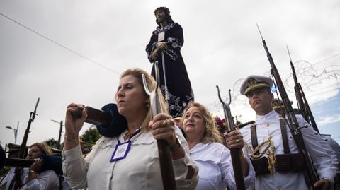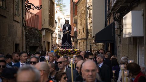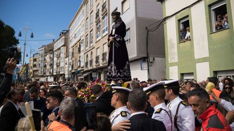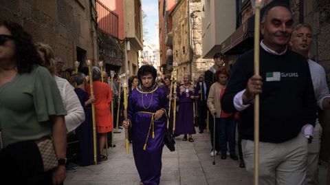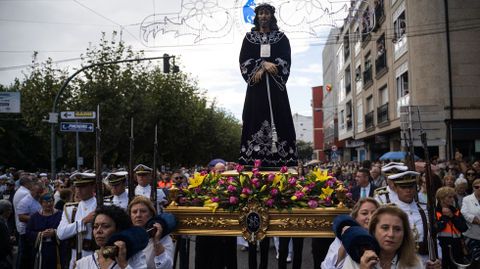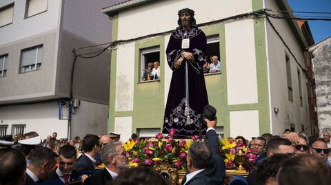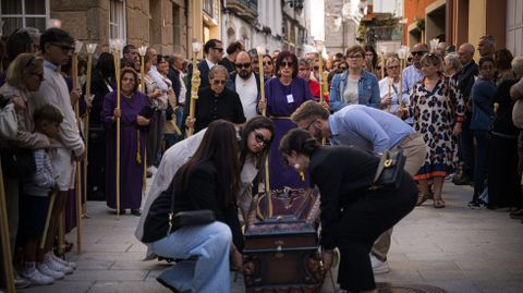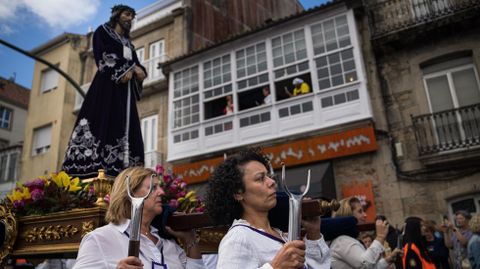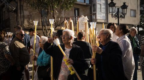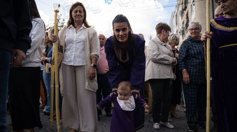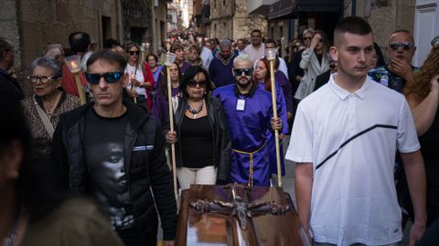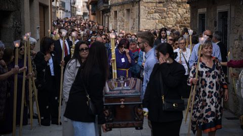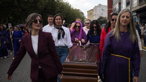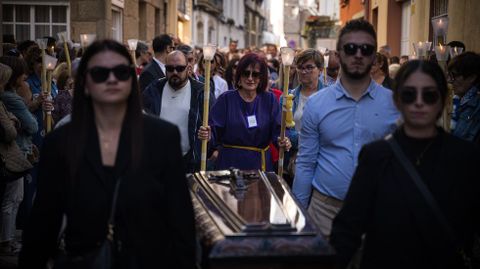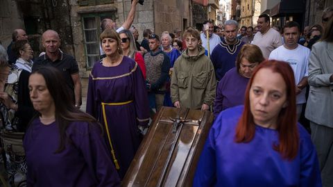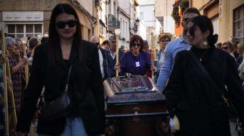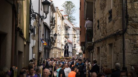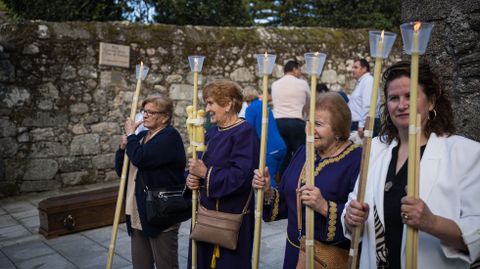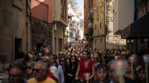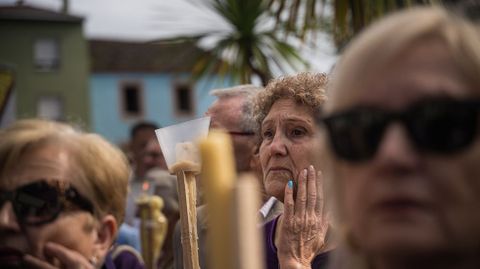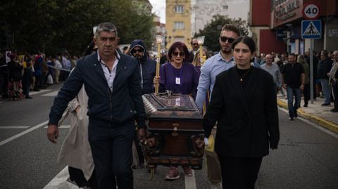 Cinco féretros encabezaron la multitudinaria procesión de As Mortallas que colapsó el casco urbano de A Pobra