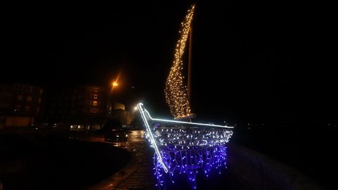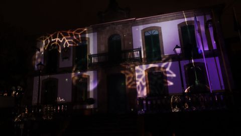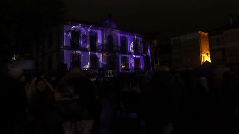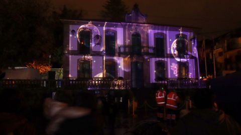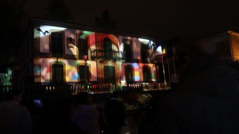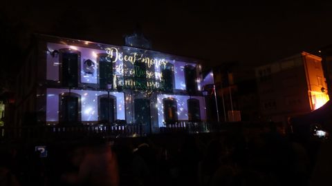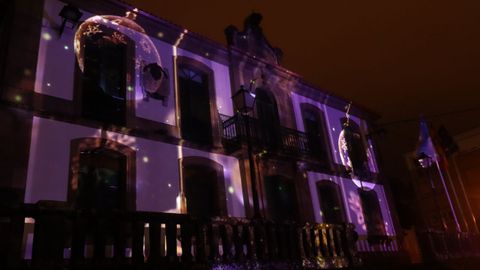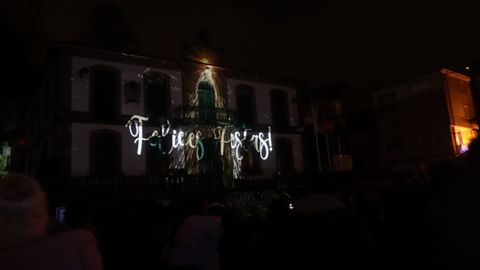 La lluvia dio una tregua y Rianxo pudo inaugurar su Navidad con una vistosa proyección de imágenes en la fachada del Concello