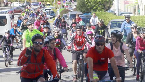 Pero si todo sale como se espera, el recorrido constará de cerca de 14 kilómetros y recorrerá varios enclaves del municipio. Los participantes están citados a las 10.30 horas en la plaza de Galicia. Media hora más tarde comenzará la ruta, en la que podrán participar todos los ciclistas mayores de seis años. El primer tramo de la travesía, entre la casa consistorial y el final de la calle peatonal, estará habilitado para los participantes de menor edad. En cualquier caso, el uso del casco es obligatorio para todos y no está permitida la utilización de bicicletas con ruedines.