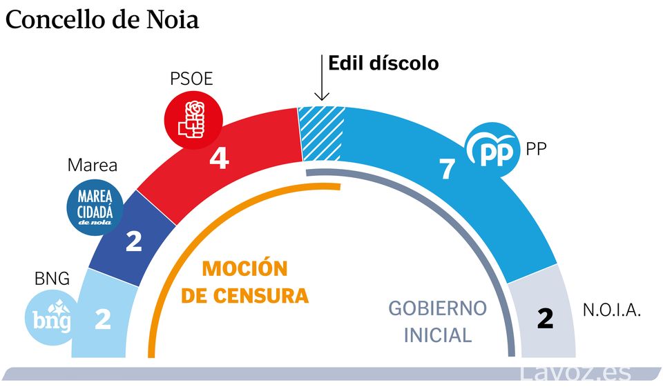 11 ago 2025 . Actualizado a las 20:58 h.Como cabía esperar, mucho antes de la hora fijada para el inicio del pleno de moción de censura en Noia, decenas de vecinos se agolpaban a las puertas del salón noble para ver en primera fila el más que previsible cambio de alcalde. Todo se desarrolló según lo previsto y el PSOE vuelve a tener el bastón de mando que había perdido hace casi diez años en otra moción de censura, gracias al apoyo de la Marea, el BNG y el edil no adscrito, Luis Alamancos, miembro del PP hasta el pasado septiembre.