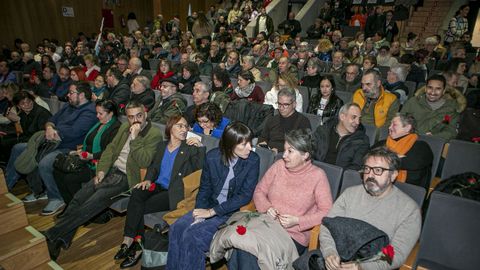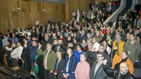 Tras os discursos, que debido ao mal tempo tiveron lugar no auditorio municipal e que acabaron con todo o público en pé para entoar o himno de Galicia, os máis de 300 participantes no acto acudiron ata a estatua de Castelao que hai no paseo da Ribeira.