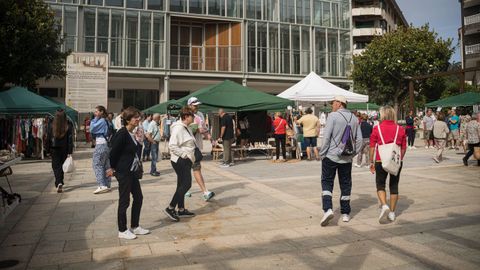 Desde las diez de la mañana y hasta las tres de la tarde, la plaza del Concello ribeirense fue un hervidero de gente mirando entre los colgadores con ropa algo a su gusto. Vestidos, alpargatas, camisetas y hasta artículos de puericultura para críos.