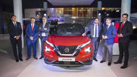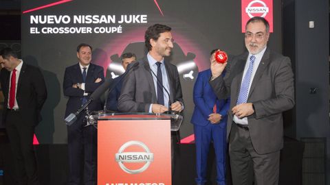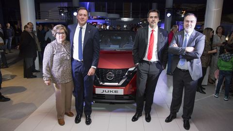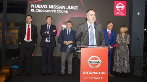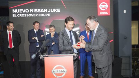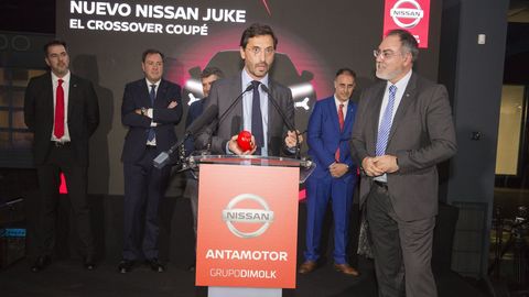 La alegría para la familia Díaz Molk fue doble ya que Nissan presentó en primicia para Galicia el nuevo Juke, uno de los emblemas de la marca nipona en el segmento de los crossover compactos, junto con el Qashqai y el X-Trail. Nissan, líder mundial en la fabricación y comercialización de vehículos eléctricos, envió a este acto tan importante al director nacional de ventas, Christian Costaganna, quien en su intervención hizo un balance de la integración de Dimolk en la marca: «El nivel de ventas ha sido muy positivo este año, como lo fue también la calidad, tanto en la comercialización como en el servicio posventa»