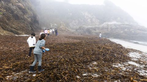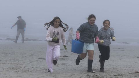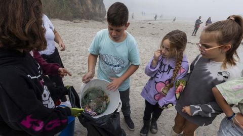 La limpieza de ayer, incluida por el centro en el programa Voz Natura, de la Fundación Santiago Rey Fernández-Latorre, permitió a los escolares, entre otras cosas, reflexionar sobre el peligro que suponen los microplásticos. «Os peixes cómenos e logo quen come os peixes?», les preguntaba a un grupo de escolares Noemí Romay, coordinadora de Voz Natura en el colegio. Se sumaron a la actividad algunos padres y madres.
