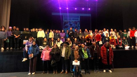 Alumnado del Cabo da Area, epicentro del 25N en Laxe, ofreció un discurso coral que iniciaron con una declaración de intenciones: «Queremos que os nenos e nenas teñan os mesmos dereitos». Lo hicieron dando relevo a la edila Raquel Lema y al alcalde, Francisco Charlín, que intervinieron para «alzar a voz e deixar claro que a violencia machista non ten cabida no noso Concello nin en ningunha parte do mundo». «A igualdade real só se consegue dende a base (...) Na escola é onde comeza todo (...) Comprometémonos a seguir traballando todos os días do ano».